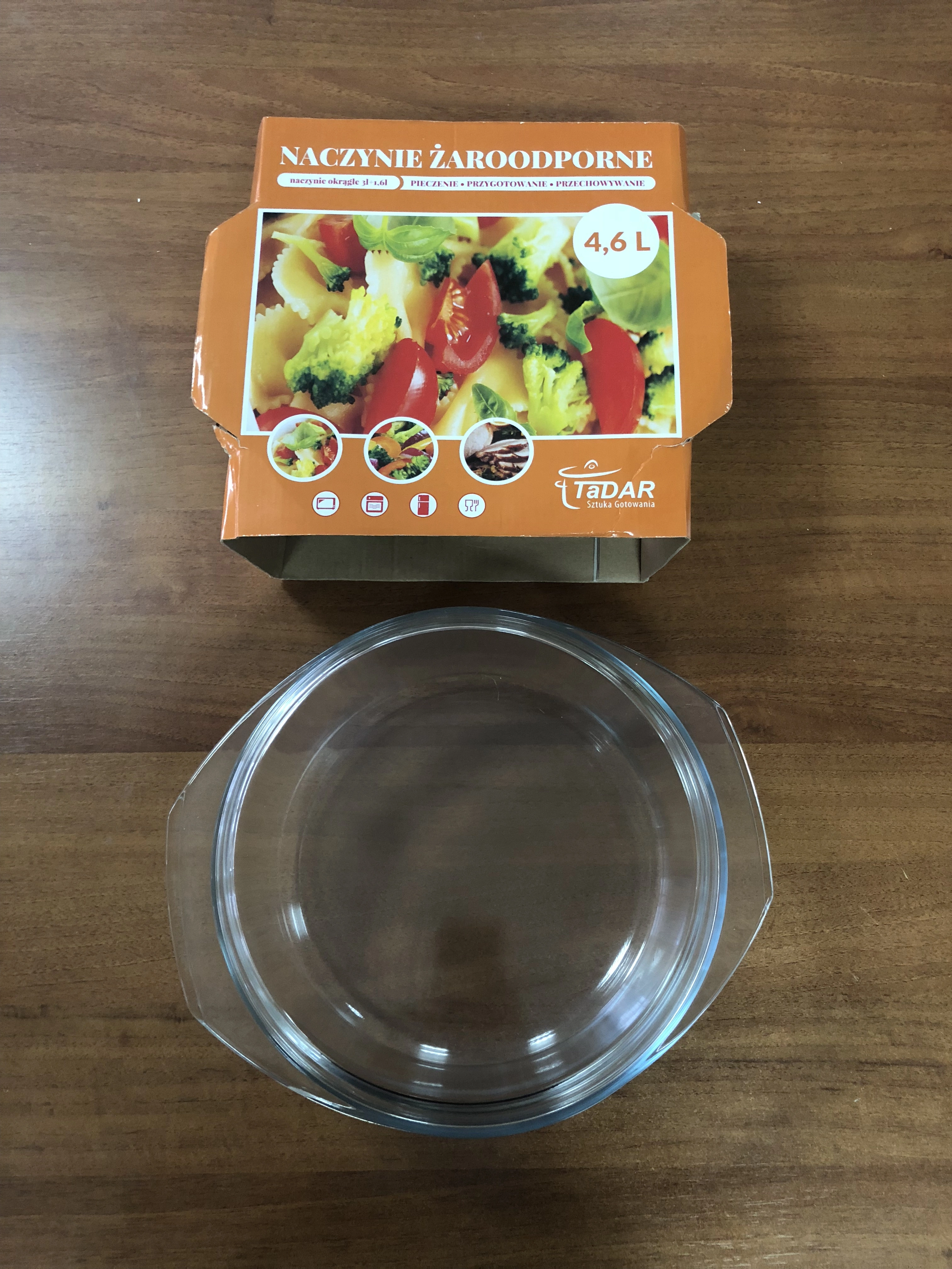 Посуда из жаропрочного стекла КРУГЛАЯ 4,6л с крышкой (3л+1,6л)